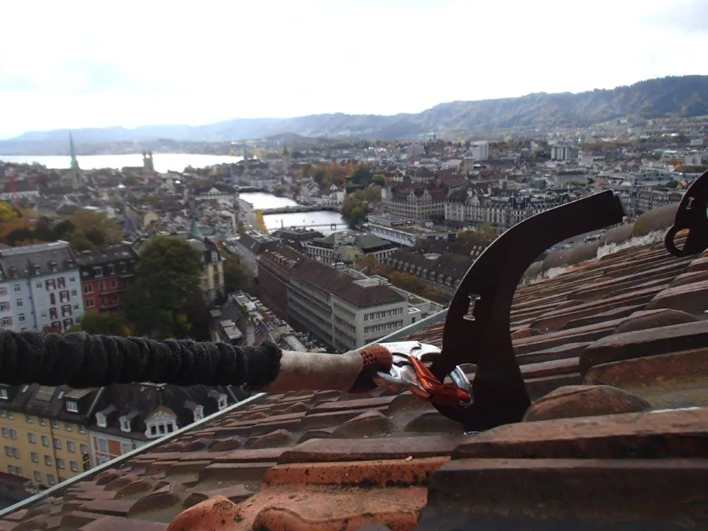 Auf Steildächern planen und montieren wir gezielt Dachhaken zur Sicherung von Menschen.